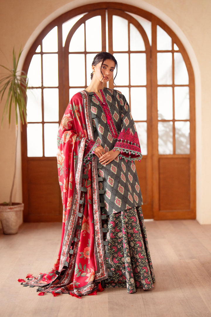 3 Piece - Printed & Embroidered Khaddar Suit - AU-07