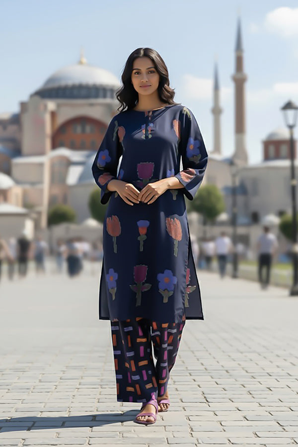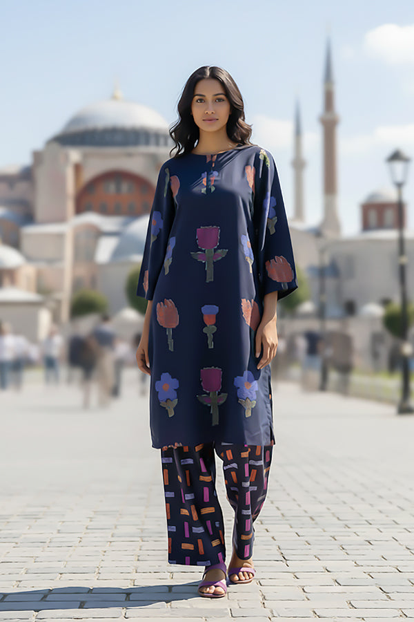 2 Piece - Printed Silk Co-ord Set - BD - 07