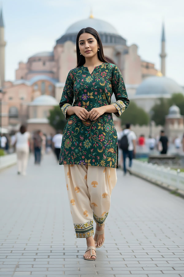 2 Piece - Printed Silk Co-ord Set - BD - 09